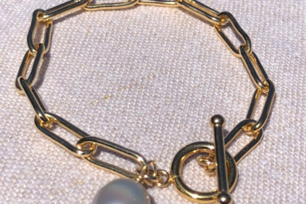 Paperclip link chain toggle bracelet pearl charm