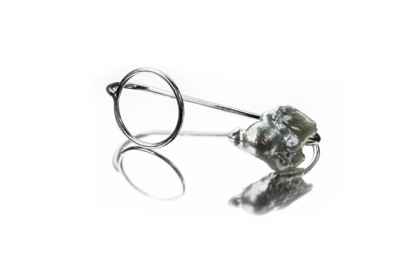 Sterling silver palm bracelet featuring a baroque pearl